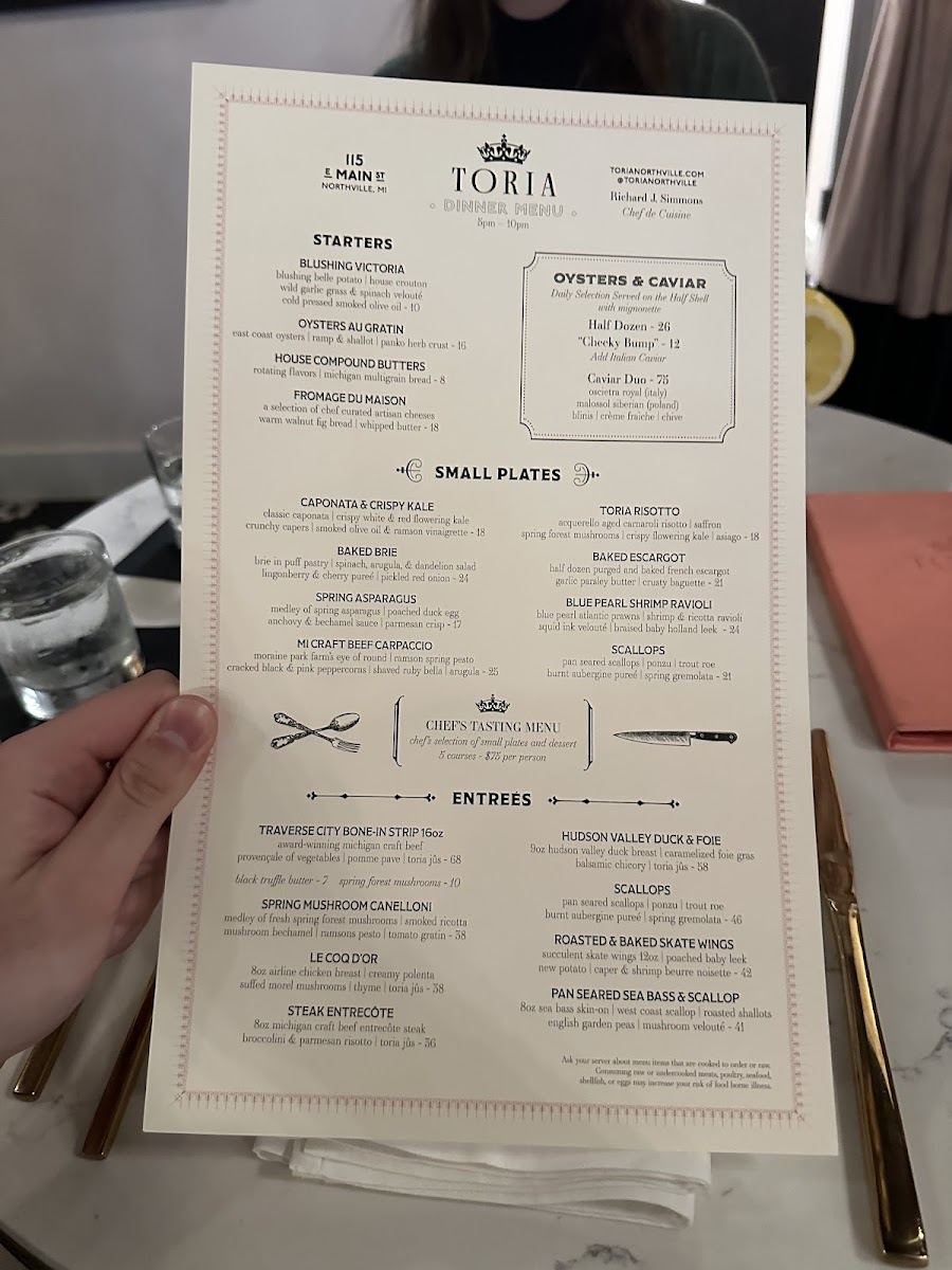 Welcome to Toria, a culinary gem nestled in Northville, MI, that redefines dining sophistication. Located at 115 E Main St, this restaurant blends a European ambiance with an eclectic menu that promises to tantalize your taste buds.